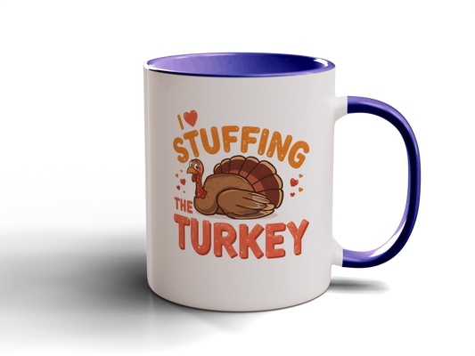 GIFT IDEA ~ I'm the turkey 11 oz mug RED + I love stuffing the turkey 11 oz mug DARK BLUE